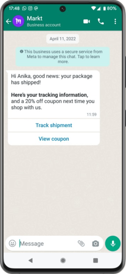 Customers are opting into post-purchase notifications and marketing messages from businesses, and reaching out to businesses for customer service on whatsApp.